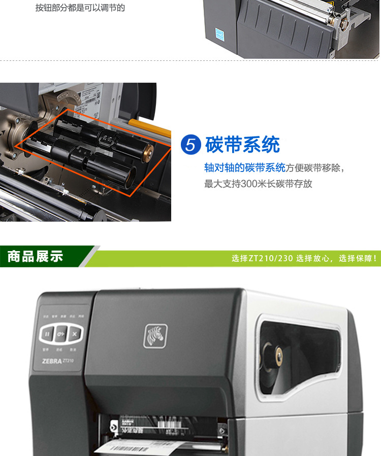 分辨率8 点/毫米/203dpi12 点/毫米/300dpi(可选)内存标配:128MB RAM内存(4MB用户可用) 128MB 闪存(58MB 用户可用)打印宽度104 毫米/4.09 英寸打印速度每秒 152 毫米/6 英寸介质传感器传输式和反射式介质特征最大标签和衬纸宽度:114 毫米/4.5 英寸非连续标签最大长度:991 毫米/39 英寸介质宽度19.4 毫米/0.75 英寸至 11.4 毫米/4.50 英寸打印长度203dpi:3988 毫米/157 英寸300dpi:1854 毫米/73 英寸最大介质卷尺寸外径 203 毫米/8.0 英寸,卷芯内径 76 毫米/3.0 英寸卷芯外径 152 毫米/6.0 英寸,卷芯内径 25 毫米/1.0 英寸介质厚度0.076 毫米/0.003 英寸至 0.25 毫米/0.010 英寸介质类型连续纸、模切纸、标签纸、黑标纸碳带规格( 热转印选项)外径81.3 毫米/3.2 英寸卷芯内径25 毫米/1.0 英寸 (ZT230)标准长度450米/1476 英尺比率介质卷与碳带比率为 3:1宽度40 毫米/1.57 英寸至 110 毫米/4.33 英寸碳带设置碳带墨面向外卷绕,卷芯对卷芯