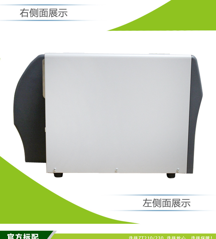环境参数工作温度:5oC 至 40oC(热转印)和 0oC 至 40oC(热敏)储存温度:-40oC 至 60oC工作湿度:20% 至 85%(无冷凝)存储湿度:5% 至 85%(无冷凝)电气参数通用自动量程电源(符合 PFC 规定),100-240 VAC、47-63Hz符合 Energy Star机构认证标准IEC 60950-1、EN 55022 Class B、EN 55024、 EN 61000-3-2、EN 61000-3-3标识:cTUVus、CE Marketing、FCC-B、ICES-003、VCCI、C-Tick、NOM、S-Mark、CCC、GOST-R、KCC、BSMI、UkrSepro物理参数(闭合状态)宽度:242 毫米/9.5 英寸高度:277 毫米/10.9 英寸深度:432 毫米/17 英寸重量:9.1 千克/20 磅选件和附件剥离 — 向前衬纸,可被动剥离,无需卷取轴剥离 — 向前衬纸,可被动剥离£¬带衬纸卷取轴(仅出厂设置)切纸器 — 向前闸刀式切纸器实时时钟 (RTC)键盘显示单元 (KDU)